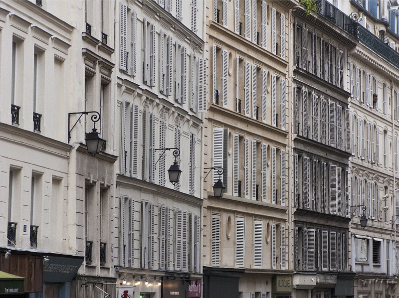 Les toitures aussi racontent une époque. La terrasse trahit souvent un immeuble bâti au XXe ou au XXIe. Un toit à deux versants visibles depuis la rue signale une singulière ancienneté, à l’image des maisons de la rue François Miron. Le zinc, si prisé au XIXe siècle, se distingue par son éclat gris pâle, tandis que l’ardoise marque de son ombre les immeubles du XVIIIe. Les différentes nuances et matériaux des toitures composent ainsi une palette propre à chaque siècle.