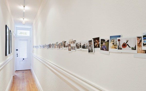 Quand l’espace ne permet pas de gros travaux, il reste la possibilité de détourner l’attention grâce à des détails simples et joyeux. Une guirlande de photos, par exemple, attire le regard tout au long du couloir et personnalise l’endroit à moindre coût.