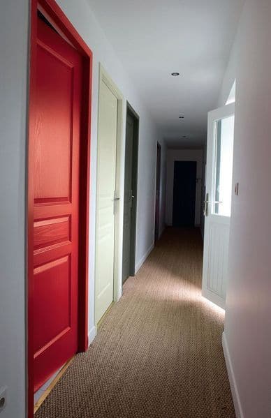 Quand les portes se multiplient le long du couloir, pourquoi ne pas les transformer en véritables atouts ? Peindre chaque porte d’une couleur différente, associée à l’ambiance de la pièce attenante, apporte du rythme et dynamise le passage. Bleu pour la salle de bain, vert pour la chambre, etc. Résultat : le couloir gagne en personnalité et en convivialité.